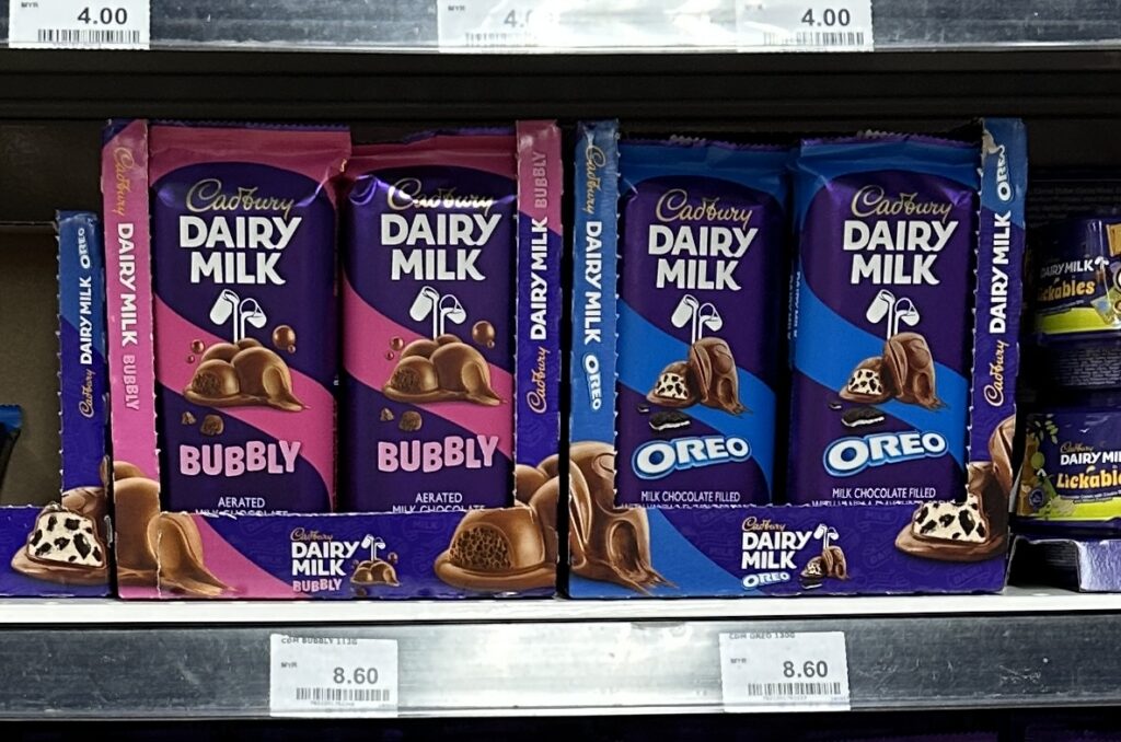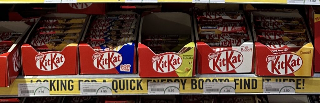The pairing of a white chocolate-matcha shell with a yogurt-strawberry filling makes perfect sense as it balances earthy bitterness with creamy acidity, specifically targeting the price-sensitive “lifestyle explorer” as this is private label product. Carton remains in neutral colours, only “green” element is product display at the front. Given the 74g it is almost same as the traditional chocolate tables.